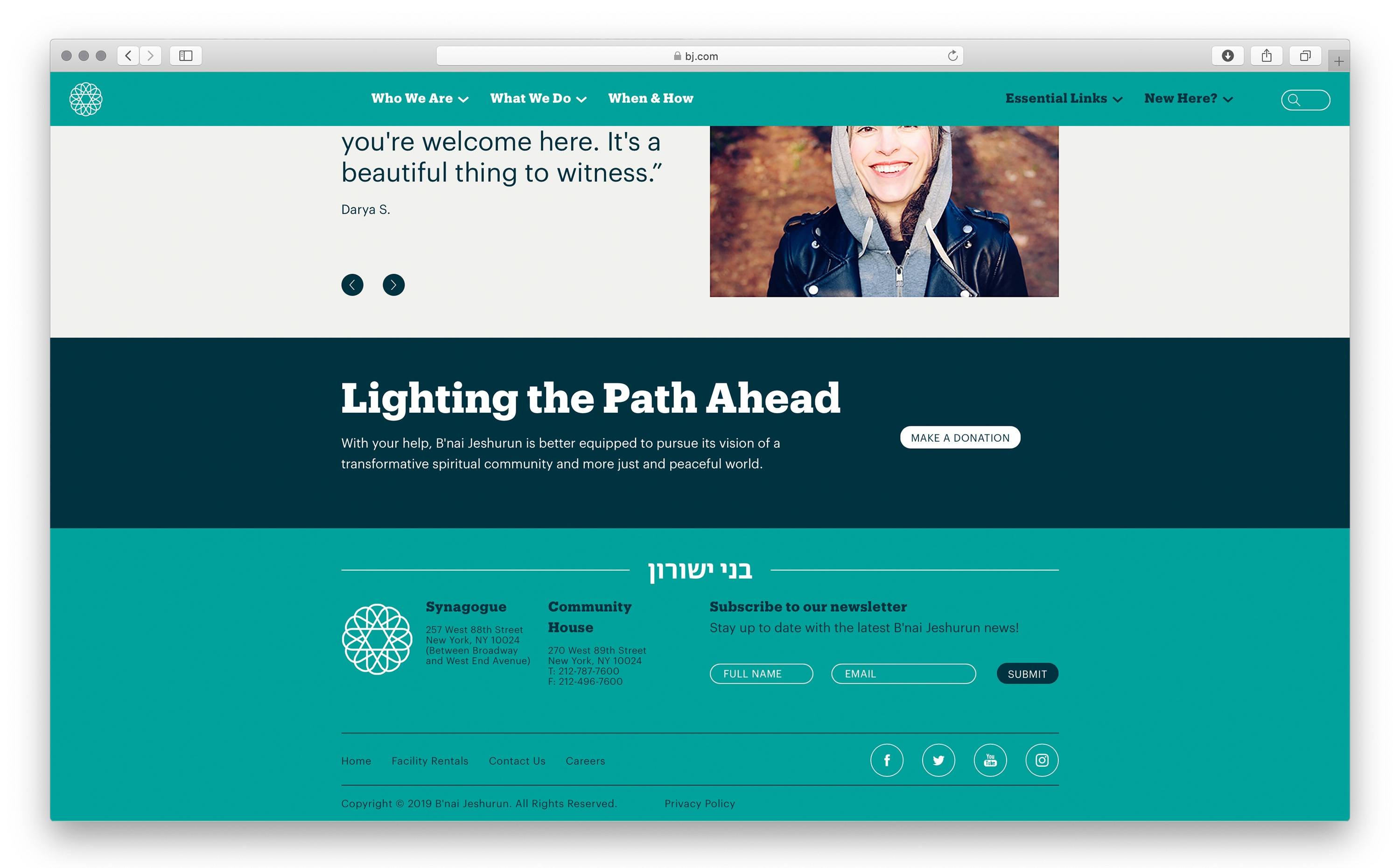 BJ’s place in the community as a religious institution and advocate for inclusive progress are key drivers in their story. They represent progress rooted in tradition. BJ is spiritual, inclusive, warm, and innovative.