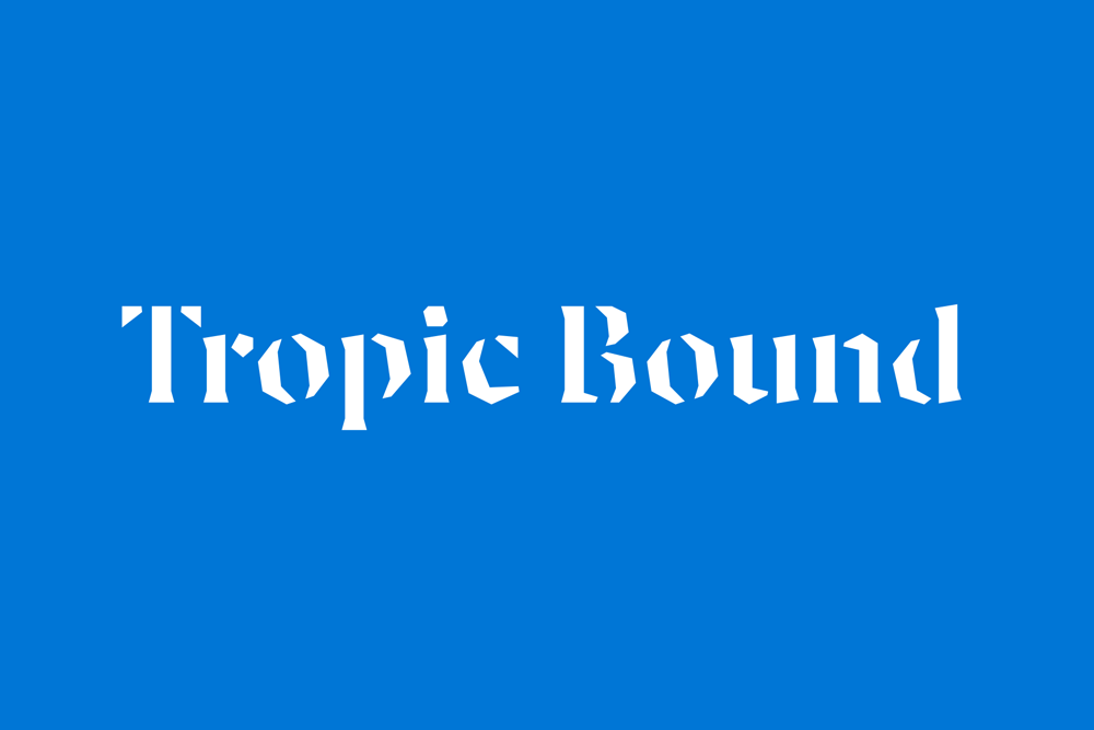 Tropic Bound’s identity uses two font families: Luzi Type’s Koper, combined with XYZ Type’s Escalator. Koper, used as an expressive display typeface, was inspired by rough woodcuts, as seen in its edges and angular features. Escalator serves as a geometric compliment—an approachable, friendly sans serif used for subheads and body copy.
