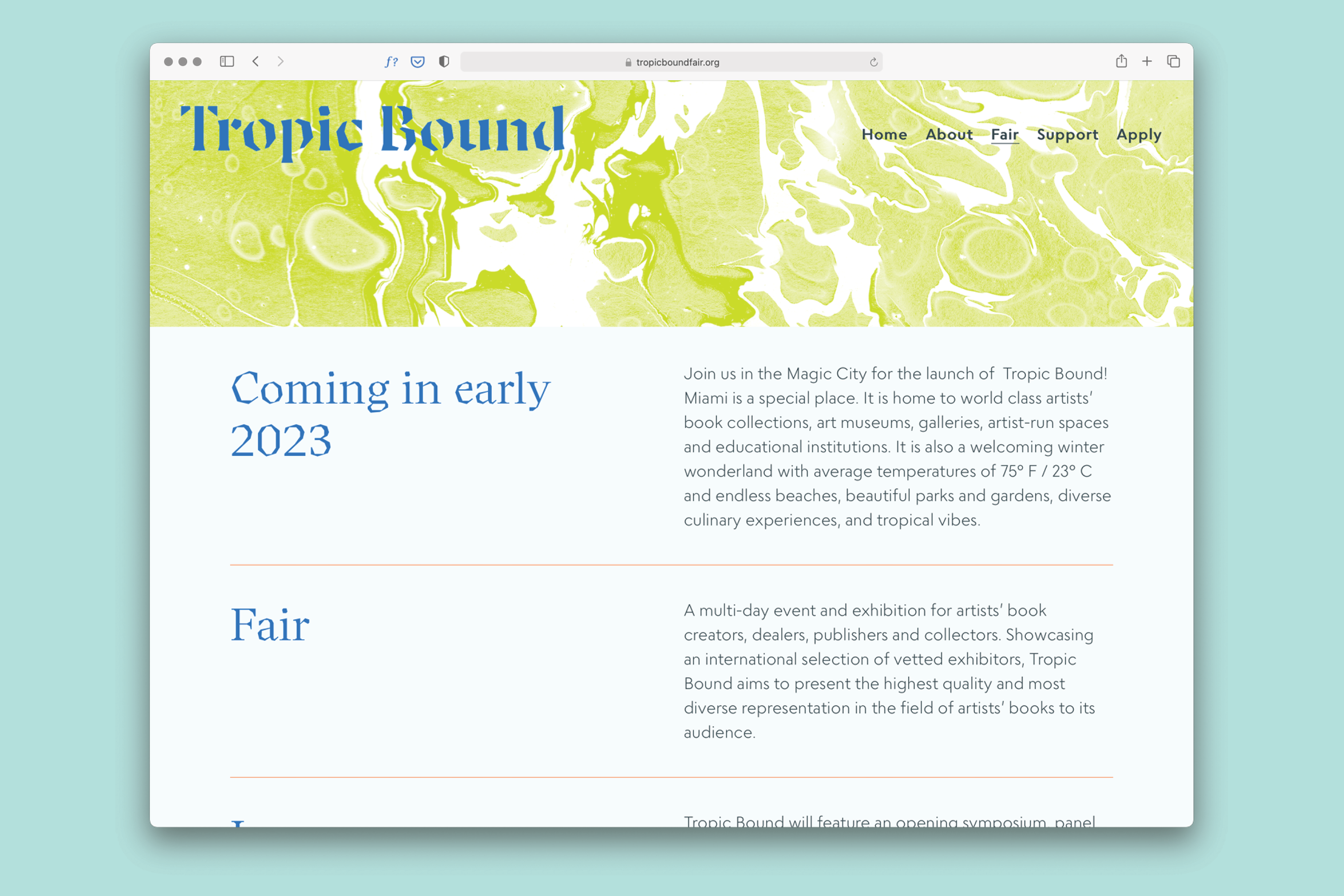The process began in 2020, and Tropic Bound’s inaugural Fair took place February 2023.
